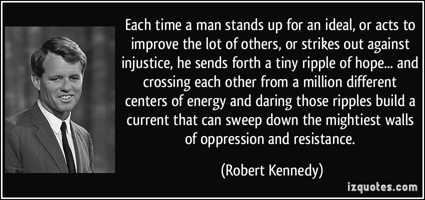 But returning to slightly more uplifting thoughts…another kind of amazing thing about ripples is their collective effect. In speaking at the University of Capetown back in 1966, Robert Kennedy said something about this that is bigger and more eloquent than anything than I could ever say, so I’ll share his words with you: